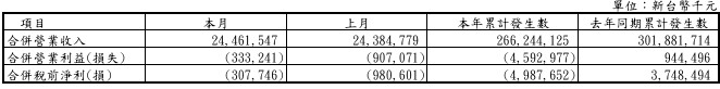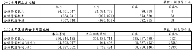 損益狀況說明 (一)損益資訊 1. 10月與9月單月損益:10月合併稅前淨損較上月有利,主係鋼鐵業單位毛利較上月增加,致營業損失減少;另礦業投資獲 配股利增加,致業外收入增加。