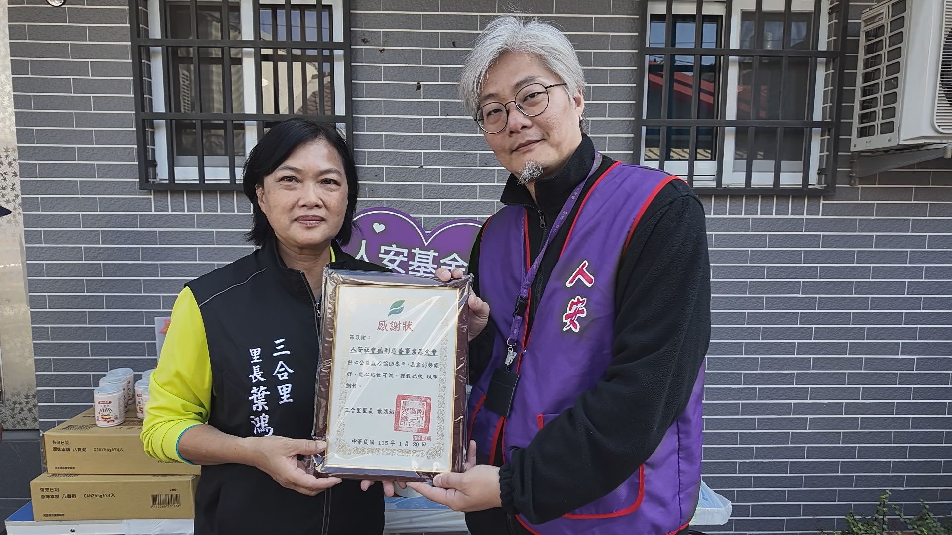 (記者 羅挺元/台南報導) 1 月 20 日「大寒」是一年中最寒冷的節氣,象徵冬去春來、希望將至。人安基金會永康平安站特別選在這一天,攜手永康區三合里里長葉鴻娥,於里內舉辦「愛心便當送愛到清寒家庭」活動,將一份份熱騰騰的餐點與關懷,親手送進寒士手中,讓寒冬不再孤單,溫暖在街巷間流動。
