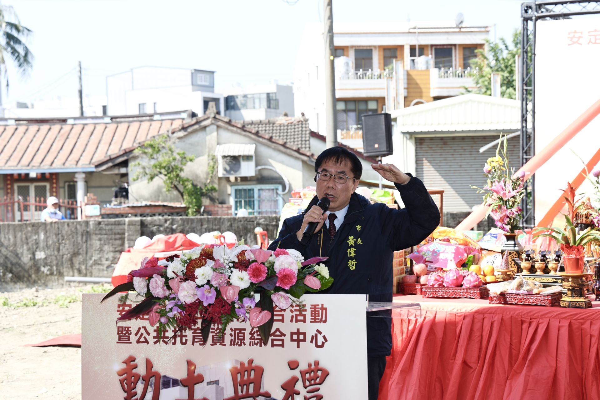黃偉哲致詞表示,該案總經費1億餘元,其中由中央補助5,300萬餘元,剩餘的4700萬則由市府自籌,透過社會局編列預算推動,展現中央與地方共同投入、攜手建設地方的決心。他感謝建築師與營造團隊在短時間內完成設計、順利推動工程開工,並期盼工程能「順順做、好好做」,避免不必要的設計變更與追加經費,在確保品質與安全前提下,讓建設如期完成,早日回饋市民使用。