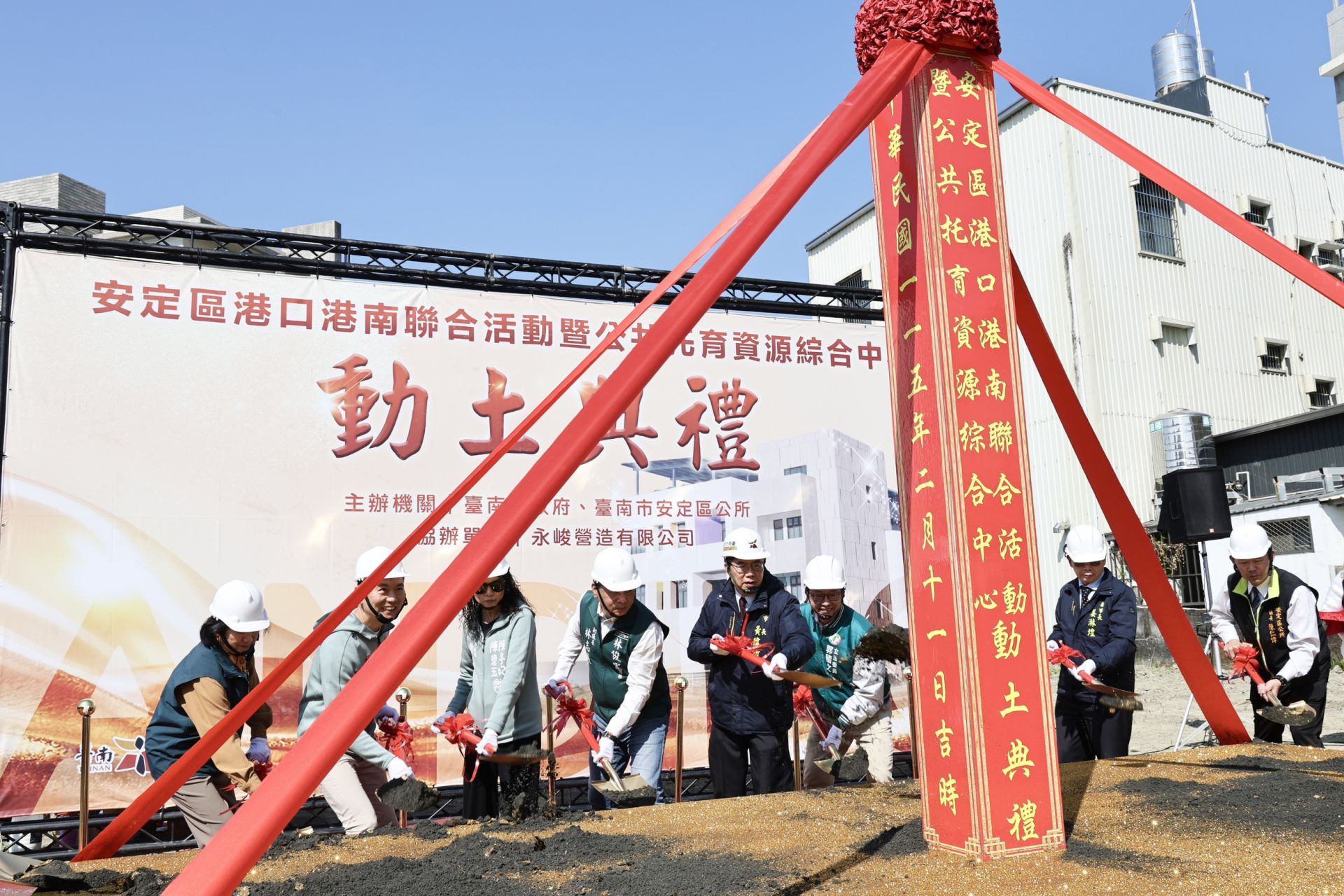 台南市安定區今(11)日舉行「港口港南聯合活動暨公共托育資源綜合中心新建工程動土典禮」,市長黃偉哲親自出席,偕同中央及地方民意代表、地方仕紳與里民共同見證,期許工程如期如質完成,為安定區打造兼具托育服務與社區活動機能的重要公共服務據點。